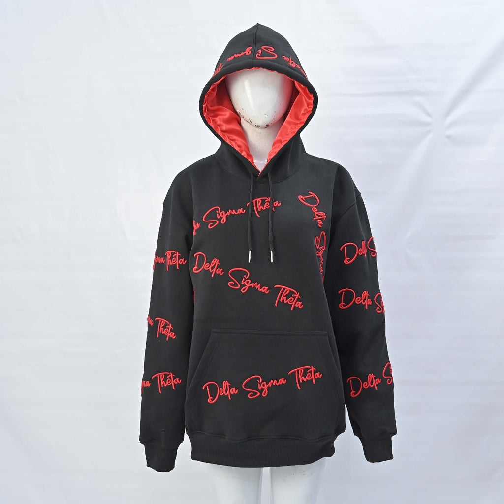 Delta Black 3D Embroidery Hoodie with Satin Bonnet